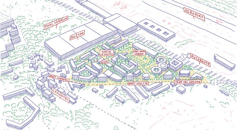 Proche de l'aéroport et du centre du Grand-Saconnex, idéalement situé le secteur de La Susette est actuellement occupé par des bâtiments d'activités tertiaires et commerciales et quelques logements. L'objectif du projet urbain dont les contours ont été annoncés aujourd'hui, est de créer une continuité dans le développement du Grand-Saconnex en faisant le lien avec le futur quartier de Carantec et l'arrivée du Tram des Nations en 2027, qui desservira également La Susette.