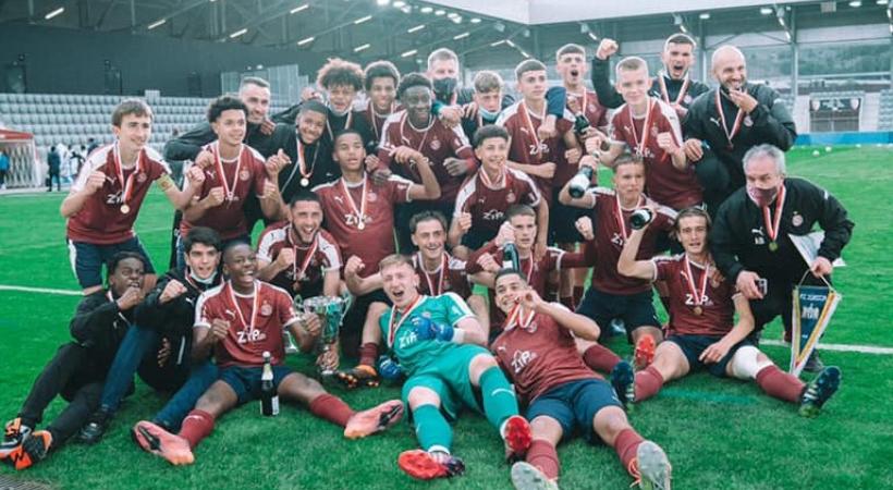 • La joie des M16 du Servette FC qui ont réussi un doublé historique avec les M18 en remportant, chacun dans leur catégorie, la Coupe de Suisse, le 26 mai à Bienne. SFC