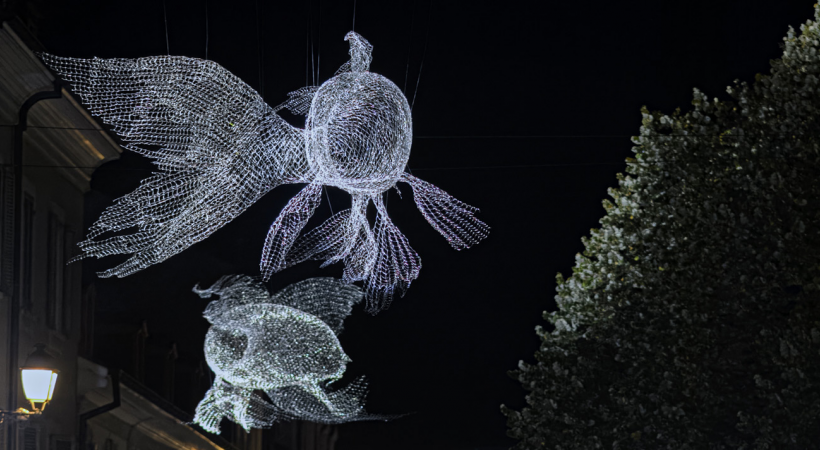 Parmi les éléments connus et emblématiques de Carouge Magique, le bestiaire de Cédric Le Borgne retrouve ses quartiers d’hiver. Les carpes de la Rivière se sont glissées rue Vautier, alors que les oiseaux picorent entre la fontaine des Tours, la place d’Armes et la bibliothèque. Les merveilles signées du studio Pitaya sont également de retour. La rue Saint-Joseph accueille les Blossom, la place du Temple les Colombes, alors que le marronnier de la Salle des fêtes prête ses branches aux Hanabis. Ces habits de fêtes concernent tout le territoire communal. Flocons et étoiles, guirlandes et boules lumineuses créent l’enchantement de la place de l’Octroi au rondeau de Carouge en passant par les écoles et la route de Veyrier.