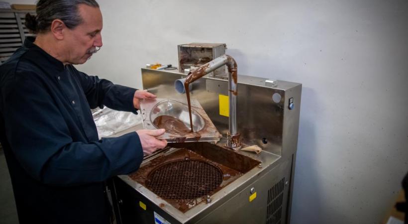Une chauve-souris géante intégralement réalisée en chocolat, une sculpture en forme de Jet d’eau ou encore un œuf en chocolat Paris-Brest… A l’approche de Pâques, les chocolatiers genevois rivalisent d’imagination pour attirer les clients. Pour les petites boutiques comme pour les plus grandes maisons, une partie non-négligeable du chiffre d’affaires dépend de cette période. Un rendez-vous à ne pas rater donc, d’autant que la pandémie a été synonyme de recul pour ce marché (lire ci-contre). L’occasion de pénétrer dans les coulisses de trois entreprises genevoises, ou plutôt dans les «laboratoires», comme on dit dans le jargon: Paganel à la rue de Carouge, Mr & Mrs Renou à Plan-les Ouates et Favarger à Versoix.