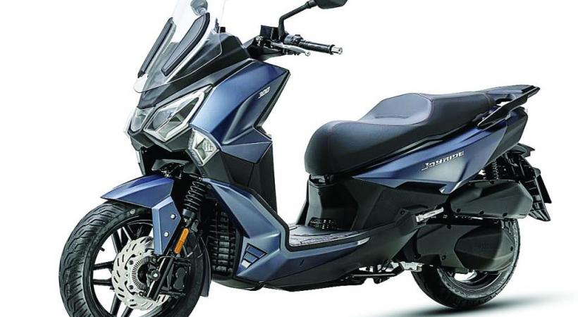 SYM • Les maxi-scooters de SYM répondent à toutes sortes de besoins. Dans la gamme 300, animée par le monocylindre de 278,3 cc de 25,8 ch, le nouveau Joyride 300 joue l’original. Son plancher plat et ses grandes roues augmentent le confort de conduite. Son allure se démarque avec un design anguleux et un triple phare, à diodes, tout comme le luminaire de la poupe. Les aspects pratiques font partie de ses atouts, comme le coffre suffisant pour abriter deux casques intégraux, la bulle réglable ou le système de démarrage sans clé. De puissants freins à disque le ralentissent, dotés de l’ABS pour éviter les surprises. Le constructeur taïwanais élargit son offre, aux côtés du Joymax Z+ 300 par exemple.