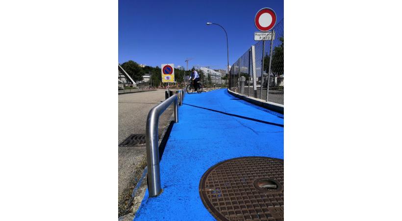 La peinture est encore fraîche. Pour cause, la deuxième couche a été posée ce lundi 14 juin au matin. Au cœur du futur quartier Praille-Acacias-Vernets (PAV), un long et insolite ruban bleu a fait son apparition. C’est là que, prochainement, s’écoulera la Drize, la rivière franco-suisse affluent de l’Aire.