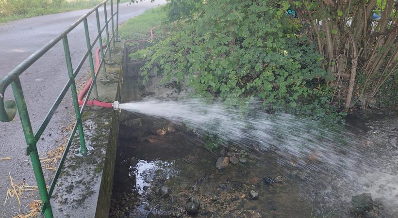 SÉCHERESSE • C’est une grande première à Genève: la rivière appelée la Drize est actuellement approvisionnée en eau par le Canton. Concrètement, depuis mercredi 22 juillet, un tuyau déverse de l’eau potable dans ce cours d’eau franco-genevois. Objectif: soutenir l’étiage de cette rivière qui souffre terriblement de la sécheresse de ces derniers jours. «On s’est rendu compte la semaine dernière que le débit à la frontière (entre Collonge-sous-Salève et la Croix-de-Rozon) était descendu à 1l/s, explique Alexandre Wisard, le directeur du Service du lac, de la renaturation des cours d’eau et de la pêche (SLRP). A cet endroit, la Drize ne coulait plus. Les poissons étaient en stress total, tentant de s’oxygéner dans les poches d’eau restantes.»
