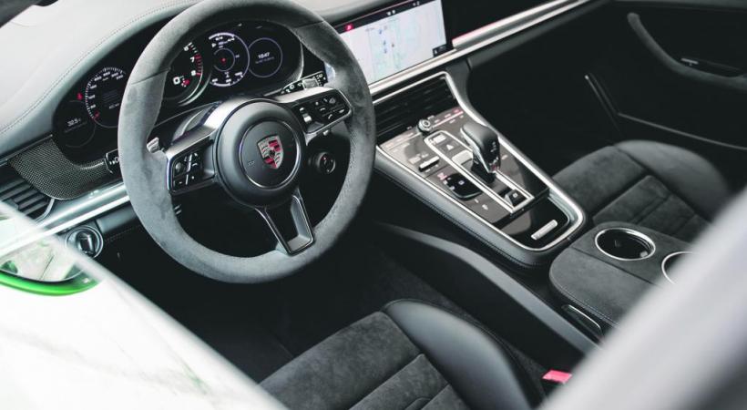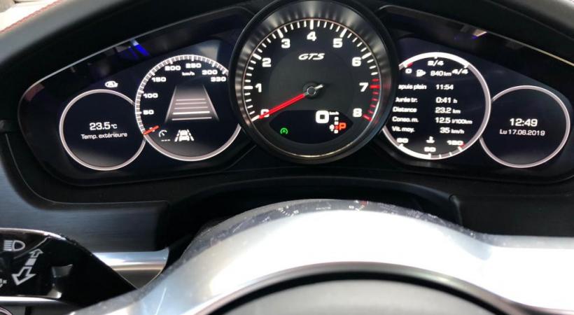 Le conducteur dispose d’un habitacle repensé. Les écrans, en face de lui ou surplombant la console, peuvent être personnalisés à l’extrême. Dans un coin, juste à côté du compte-tours, le détecteur infrarouge montre les animaux ou les humains présents sur la chaussée ou le bas-côté. Le système d’éclairage porte loin tout en évitant tout éblouissement. Parfaite pour le circuit, idéale pour de longs trajets, cette Panamera GTS Sport Turismo combine des aspects pratiques bien pensés à un tempérament de feu.