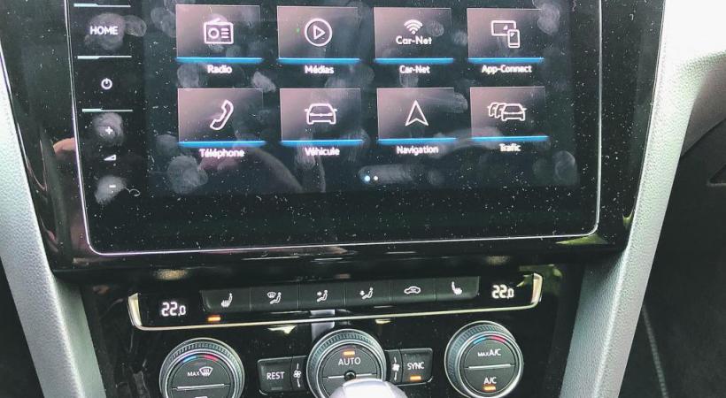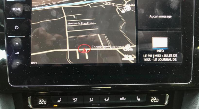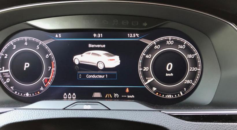 Le positionnement haut dans la gamme impose des équipements adaptés. Cette Arteon, moyennant quelques options, dispose d’un affichage tête haute sur un petit écran qui se déploie au démarrage. Les informations ne sont pas rares, puisque les compteurs sont étendus sur un grand affichage entièrement paramétrable, qui peut, notamment, reproduire en grand la carte du navigateur.