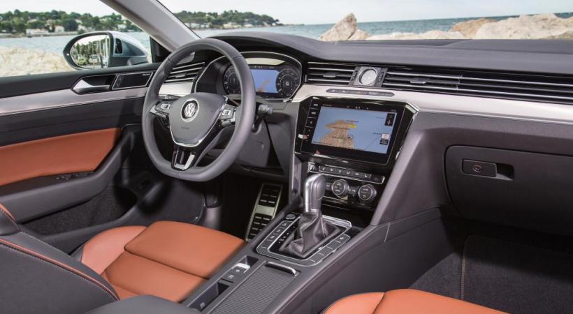 Compression de «art» et de «eon», la VW Arteon se situe au niveau supérieur de la gamme. Au-dessus de celle dont elle partage les bases, la Passat. Les designers ont choisi des courbes très plates, allongeant la ligne, et des astuces comme la calandre qui semble se fondre dans les feux effilés. Notre voiture de test, dotée des équipements R-Line, avait un petit spoiler discret à l’extrémité du coffre.