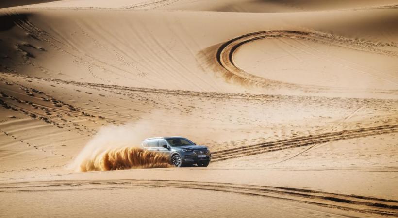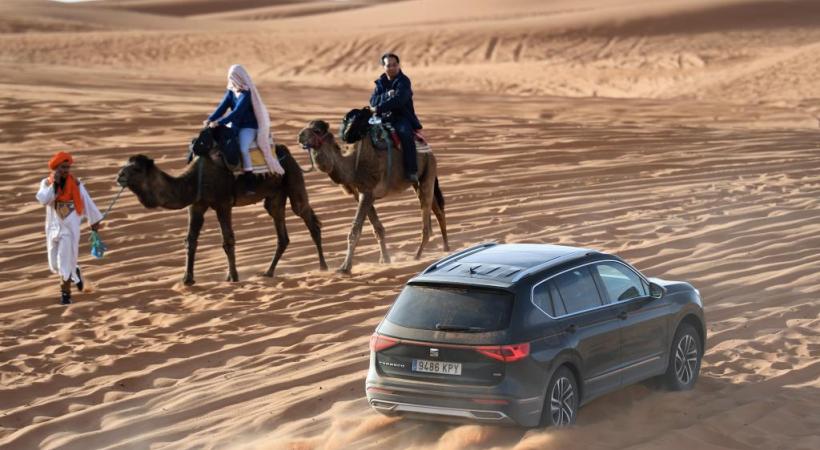 Sans avoir les capacités d’un vrai 4x4, le Tarraco adopte tout de même une transmission intégrale performante. Dans les dunes du Maroc, un geste de trop et vous voilà planté. Mais l’expérience montre qu’en dégageant quelques poignées de sable, par exemple derrière deux roues en aval, on tourne le volant en direction du bas de la pente et… on repart de plus belle. Amusant et c’est l’une des qualités de ce grand SUV.