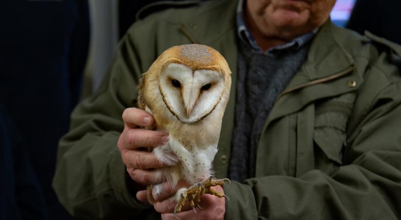 • Tenant la chouette effraie, Patrick Jacot, président-fondateur du Centre ornithologique de réadaptation. STÉPHANE CHOLLET