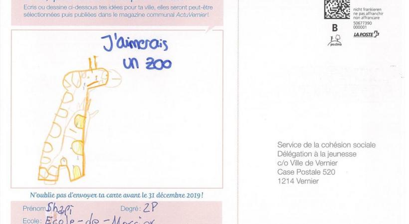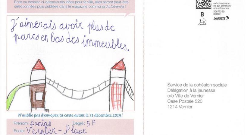 Rêver Vernier, tel est le joli nom d’un projet participatif mis sur pied par la commune pour éveiller les écoliers à la notion de citoyenneté. Lors de ces ateliers, lancés en 2019, à l’occasion des 30 ans de la Convention des droits de l’enfant, les petits Verniolans ont été invités à dévoiler leurs rêves sur des cartes postales vierges, en dessins ou par écrit.