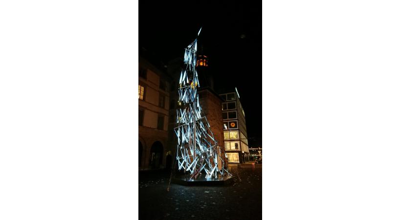 Si des artistes internationaux participent à l’événement, les Suisses ne sont pas en reste. A l’image de François Moncarey. En lieu et place du sapin de Noël, place du Molard, s’érigera son œuvre intitulée Swarm. Inaugurée en janvier 2020, elle est de retour pour cette nouvelle édition. «Je me suis inspiré des ballets d’étourneaux que l’on observe dans le ciel genevois en octobre», commente celui qui a longtemps habité à la Jonction. «Malgré l’absence de chef d’orchestre, les oiseaux forment des ballets géométriques. Des chercheurs les ont étudiés et ont généré des algorithmes.» Des données scientifiques que l’artiste a utilisées pour créer sa sculpture. «Cela donne l’impression que les oiseaux sortent des pavés de la place pour s’envoler dans le cosmos en formant un vortex», souligne-t-il.