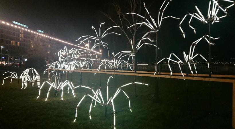 Autre sculpture lumineuse très attendue: les araignées du groupe Laps (voir la vidéo), qui éliront domicile sur la Rotonde du Mont-Blanc. «Il y en aura 70. Plutôt majestueuses puisque leurs pattes mesurent un mètre chacune une fois déployée», explique Thomas Veyssière, l’un des six membres du groupe qui officie à Montreuil, près de Paris. Pas de quoi flipper pour autant. «En utilisant la décomposition de mouvement et les bruitages cartoon, on leur donne une âme», poursuit l’artiste. Les «spiders» évolueront sur des agrès de gymnastique, de quoi les rendre fort sympathiques.