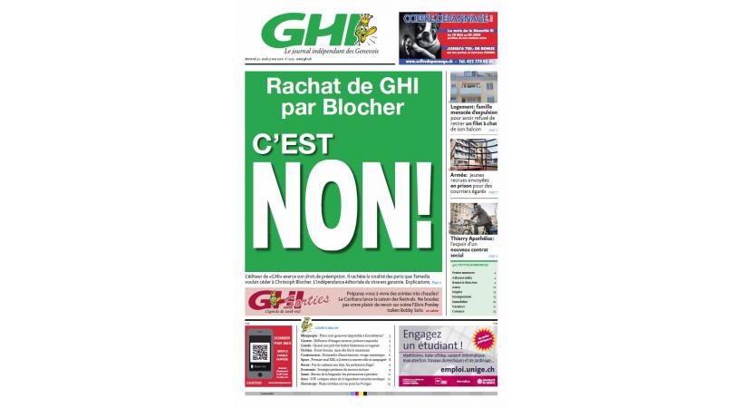 S’EST FAIT une spécialité, depuis presque vingt ans, de commenter sur scène les manchettes (ou affichettes) de journaux. Mais aucune ne lui avait procuré autant de plaisir que celle du journal que vous tenez entre les mains et datant de la semaine passée: «Rachat de GHI par Blocher: c’est non!». Si le tribun zurichois est toujours à la recherche d’un titre en Suisse romande, Le Gniolu lui conseille de mettre une petite annonce. Payante, bien sûr.