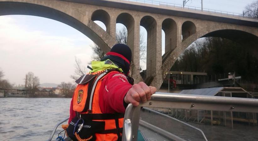 Bord de l’Arve, 9h10: Bascule ou pas, le SIS veille au grain. Vue la douceur des températures, le débit de l’Arve est haut. Il atteint 470 m3 par seconde. Il s’agit d’inspecter les bords de la rivière, à la recherche d’éventuels SDF en danger. «On fait la reconnaissance de tous les ponts depuis la passerelle des TPG jusqu’au pont de Sierne», précise le sergent-chef Yann Weber, vêtu d’une combinaison néoprène.