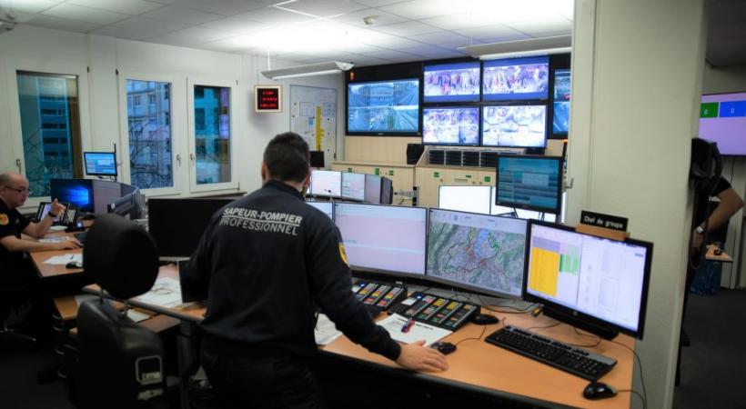 Caserne 2, Asters, 8h40: L’alarme sonne. Un des derniers gongs, bientôt remplacé par une notification sur les smartphones. Les mots-clés «incendie» et «magasin» s’affichent sur les écrans géants dispersés dans la caserne. Ceci n’est pas un test. Sirène bleue enclenchée, les véhicules d’intervention s’élancent. «Où est-ce qu’il y a le feu?» interrogent les badauds, en voyant arriver les hommes en uniforme. Une odeur de fumée s’élève de la conduite d’aération. «Dans le parking, un néon et son support plastique ont grillé», précise le major Frédéric Jaques, lui aussi sur place. Rien de grave. Il est temps de rentrer.