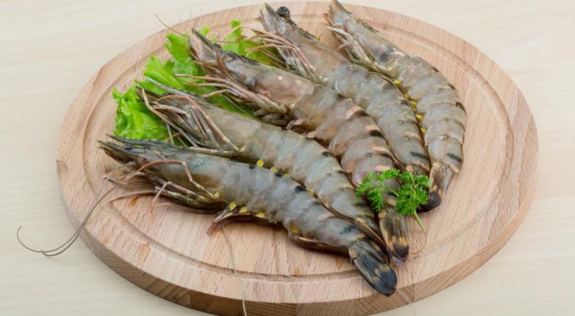 Disposer joliment les crevettes et les artichauts sur les assiettes et coiffer avec les tranches de lard aromatisé (3 tranches par assiette).
