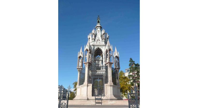 ARGENTé, le canton de Genève, qui récolte à foison les millions des successions ou donations. En 1873 le Duc de Brunswick a légué à la Ville, en mourant, un pactole d’environ un milliard de francs suisses actuels. A charge pour Genève de lui faire élever, face au lac, un mausolée dans le style de celui des Scaligeri à Vérone. Celui-ci fut érigé, quai du Mont-Blanc. Le legs permit d’éponger la dette de la Ville et de l’embellir en réalisant le Grand Théâtre, l’Ecole d’Horlogerie, les grilles dorées du parc des Bastions…