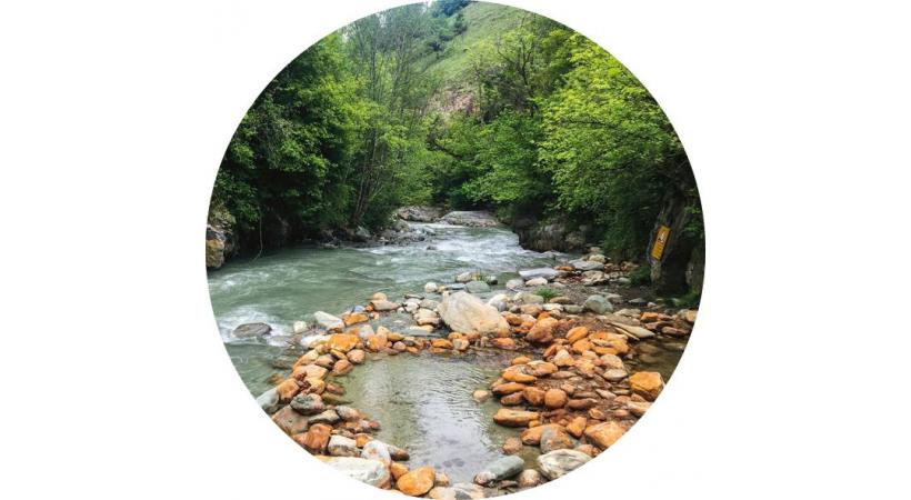 Le sentier des pyramides est une très jolie balade qui part de celles-ci puis suit la Borgne jusqu’à la source naturelle de la Cambioula. En vous approchant, vous sentirez une odeur de soufre. Elle est due à la forte présence de sulfure d’hydrogène dans cette eau thermale. Un bassin circulaire formé à l’aide de galets invite à la baignade, possible en toutes saisons car son eau est à 28 degrés toute l’année!