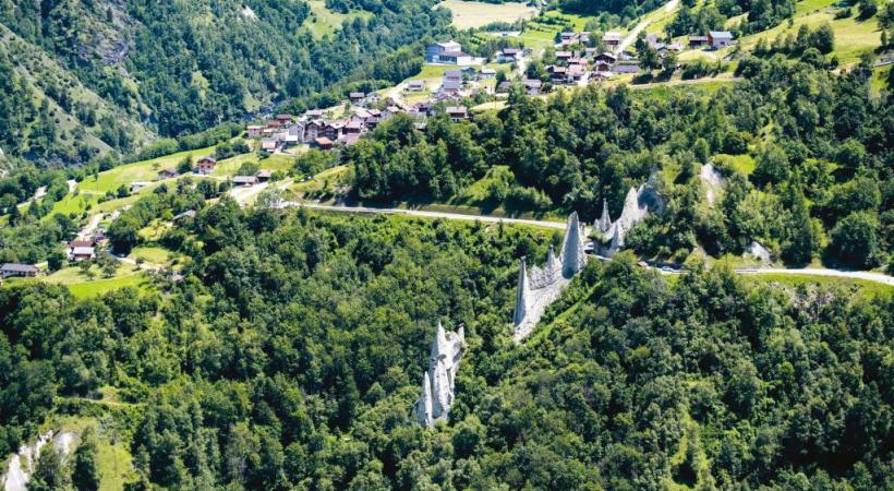 Ces curiosités géologiques sont apparues il y a environ 80’000 ans, lors de la dernière glaciation. Quand le glacier s’est retiré, il a laissé des amas de roche compacte que l’on appelle «moraine». Avec le temps, celle-ci s’érode à cause des intempéries, du vent, du gel et du soleil. En revanche, il y a d’autres rochers plus résistants qui subissent moins de dégâts. Ils finissent par être isolés et deviennent ces fameux «chapeaux» qui protègent de l’érosion la moraine située en dessous. C’est ainsi que se forment ces silhouettes si particulières.