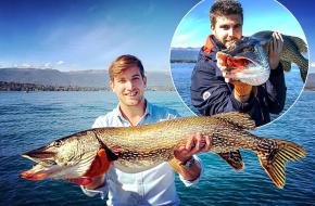 Pour leur première sortie en bateau de la saison, Léo, étudiant en 5e année de médecine et son frère Ted (en médaillon), ont pêché un brochet d’un mètre de long pour sept kilos!