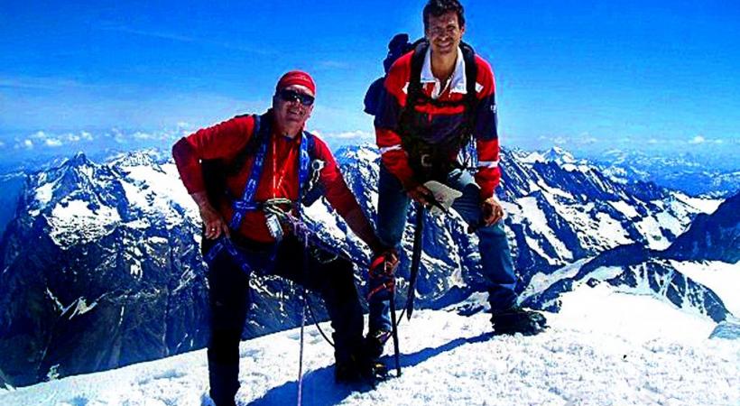 Mönch - 30 mai 30.05.15 Précédent Suivant Retour Culminant à 4107 m. d’altitude, le sommet du Mönch, dans les Alpes bernoises, est le cadeau que s’est offert pour ses 50 ans l’assureur genevois Benjamin Cohen (à dr.), ici avec son guide.
