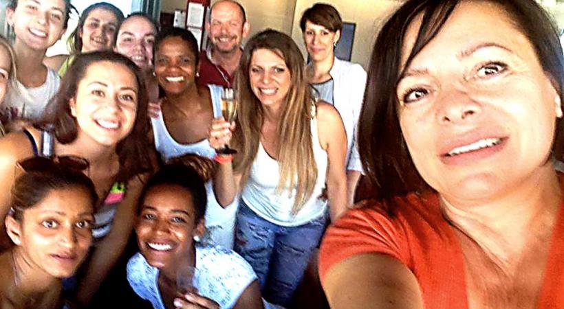 Marisa Treccani, directrice d’Esthélite, centre de formation pour les professions de l’esthétique et du bien-être, avec ses souriantes élèves.