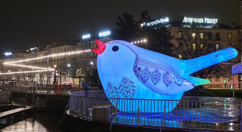 Chaque week-end, en soirée, le public assiste ainsi à des performances artistiques. Aka, une marionnette géante déambulera ce week-end du 26-27 janvier au Jardin Anglais mais aussi sur le quai du Mont-Blanc, tandis que La Baleine articulé flottera littéralement au-dessus de la Rade les 2 et 3 février.