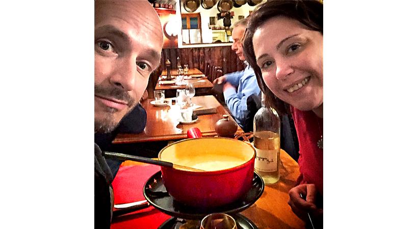 «C’est au restaurant Au Vieux-Carouge que j’ai fait découvrir à Myriam la fondue moitié-moitié et les meringues à la crème de Gruyère!» Pierre-Laurent.