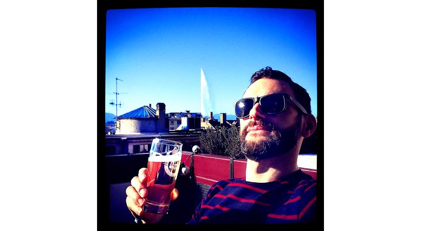 Profitant de la chaleur d’avril, je me suis tout de même découvert d’un fil ! Sur ma mini-terrasse, des bulles, du ciel bleu et le jet d’eau… Tout va bien ! Olivier
