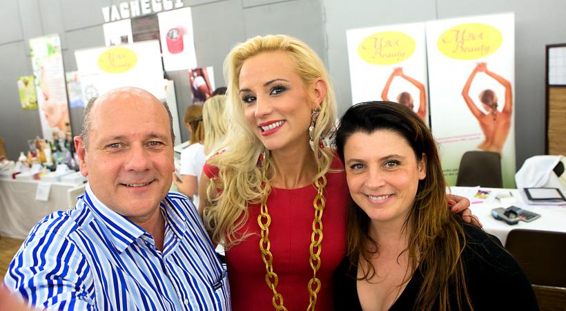 Siwell (anciennement Genève esthétique), le salon international wellness, esthétique, look et lifestyle a accueilli Elodie Gossuin. L’ex-Miss France 2001 pose ici avec l’organisateur du salon, Stéphane Godet et Cécile Z.