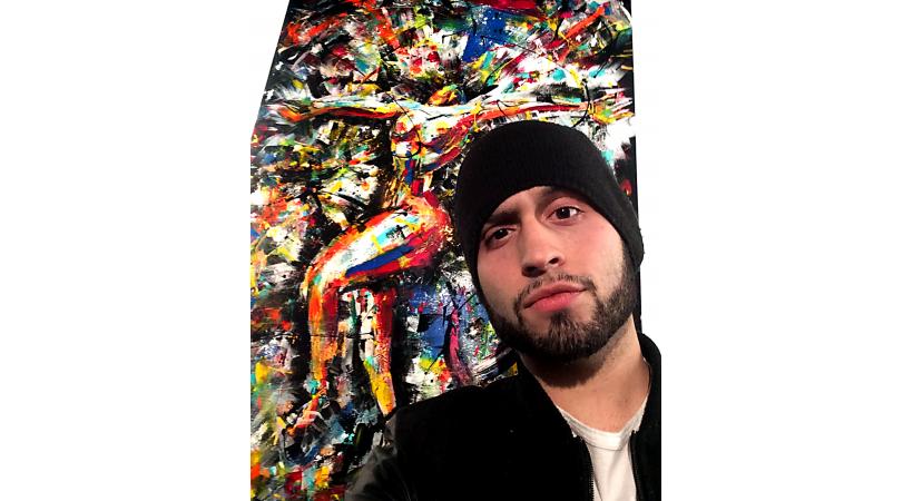 Âgé de 24 ans, Michael Granja est un artiste d’origine espagnole né à Genève. Lors d’un concert du rappeur genevois Eriah à La Traverse, il a mis cette toile aux enchères dans le but de récolter des fonds pour une association caritative.
