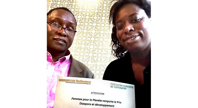 L’association Femmes pour la Planète, ici représentée par Mamadou Touré et Ndeye Fatou Coulibaly, a reçu le prix Diaspora et Développement (CHF 5000.-) décerné par la Fédération Genevoise de Coopération.