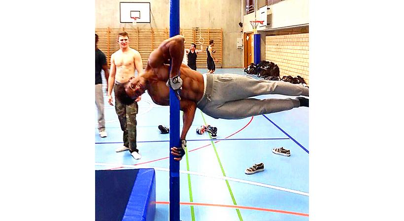 Le Kaptain Dadax, membre du groupe lyonnais des Soldats du Quai participait au dernier meeting Koht Wear, à la salle de gym de la Caroline. Avec lui, les adeptes du StreetWorkout (musculation de rue au poids du corps). Un pareil meeting a lieu en fin de mois.
