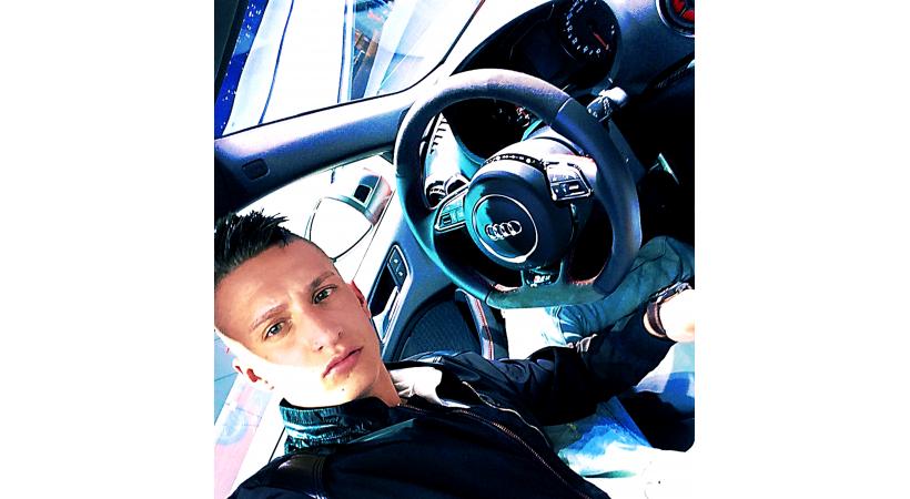 Oleg au volant d’une Audi. Sur son stand, la firme allemande présente des véhicules en première mondiale : les RS 3 Sportback, Q7 e-tron et R8.