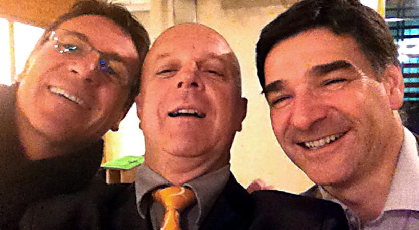 Avant le match du Chênois Genève Volleyball, un apéritif était organisé pour remercier sponsors du club, autorités et partenaires. Ici, Philippe Delcourt (mission permanente de Belgique à l'ONU), Jacques Jeannerat (directeur CCIG) et Denis Picard (CEO de Citroën).