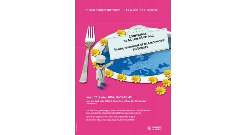 «Islam, islamisme et islamophobie en Europe» Bons plans12.02.2014Rédigé par Anne Marie Mathys commentaires Poster un commentaire Le prochain Midi de l’Europe sera animé par Luis Martinez, politologue. Lundi 17 février, de 12h15 à 13h45.