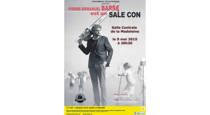 "Pierre-Emmanuel Barré est un sale con" Bons plans29.04.2015Rédigé par Rédaction commentaires Poster un commentaire Un nouveau one-man-show caustique sur l’absurdité du «politiquement correct». Samedi 9 mai à 20h30.