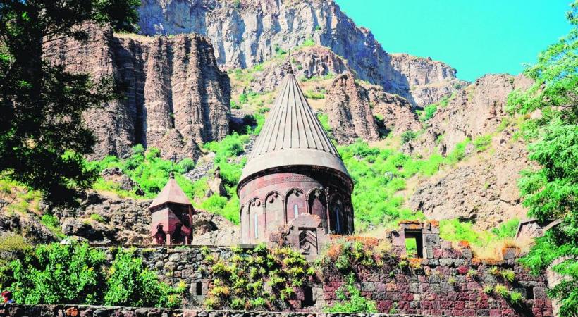 En arrière-plan, l’on distingue le mont Ararat (5135 m), cependant situé sur territoire turc. Il couverait les restes de l’Arche de Noé… Ce massif volcanique aux neiges éternelles présente une double facette: luxuriante et rocheuse. Au nord d’Erevan, Ghéghard et ses chapelles taillées dans le roc sont demeurés intacts. La foule est compacte en fin de semaine, mais c’est l’occasion d’assister à la ferveur des fidèles et, avec un brin de chance, à un baptême.