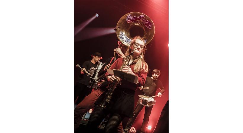 La Fanfare Revuelta appelle la danse et la fête avec ses rythmes chauds et endiablés! Un son inspiré par l’Amérique du Sud, tout en intégrant les musiques actuelles, de l’improvisation et du jazz.