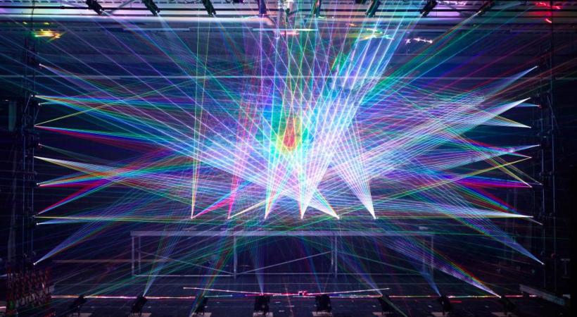 Dans cette version audacieuse de Turandot, l’installation se compose de 50 sources laser qui façonnent des sculptures lumineuses dans l’air, auxquelles vient s’ajouter un mur vidéo de 90m2.