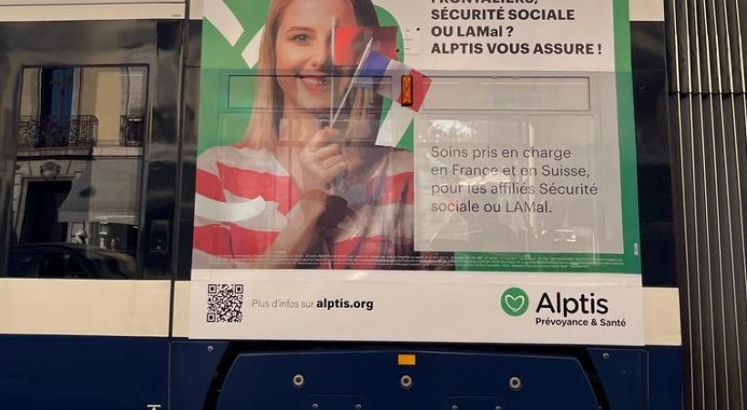 De nombreux Genevois ont pu la découvrir placardée sur les trams. Probablement dans l’indifférence, tant ils y sont habitués. Sauf que cette fois l’affiche est destinée... aux frontaliers, leur vantant une assurance-maladie couvrant autant la LAMal suisse que la sécurité sociale française.
